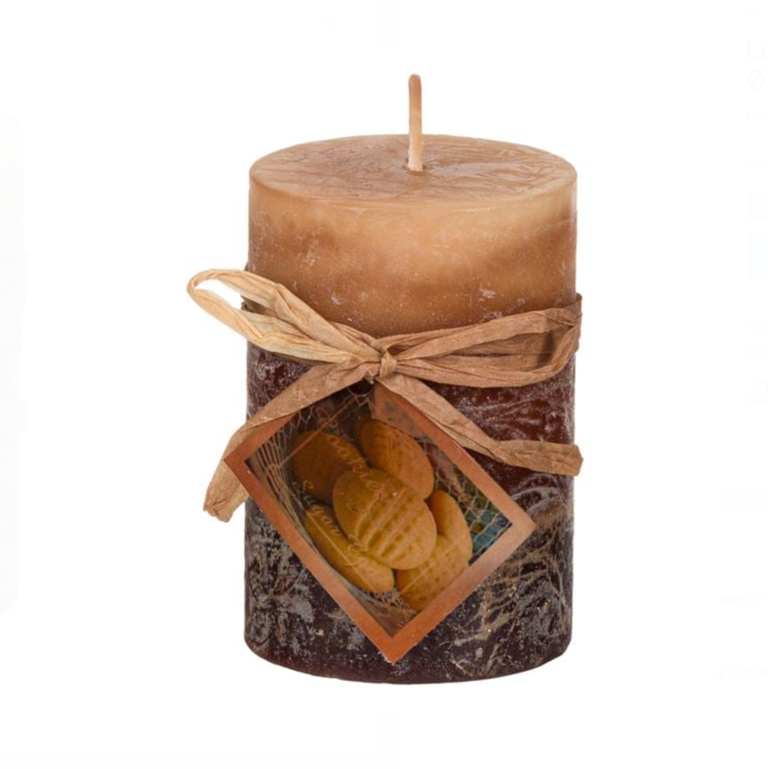 Lumânare parfumată decorativă, în trei nuanțe de maro, cu aromă dulce de Sugar Cookies.
