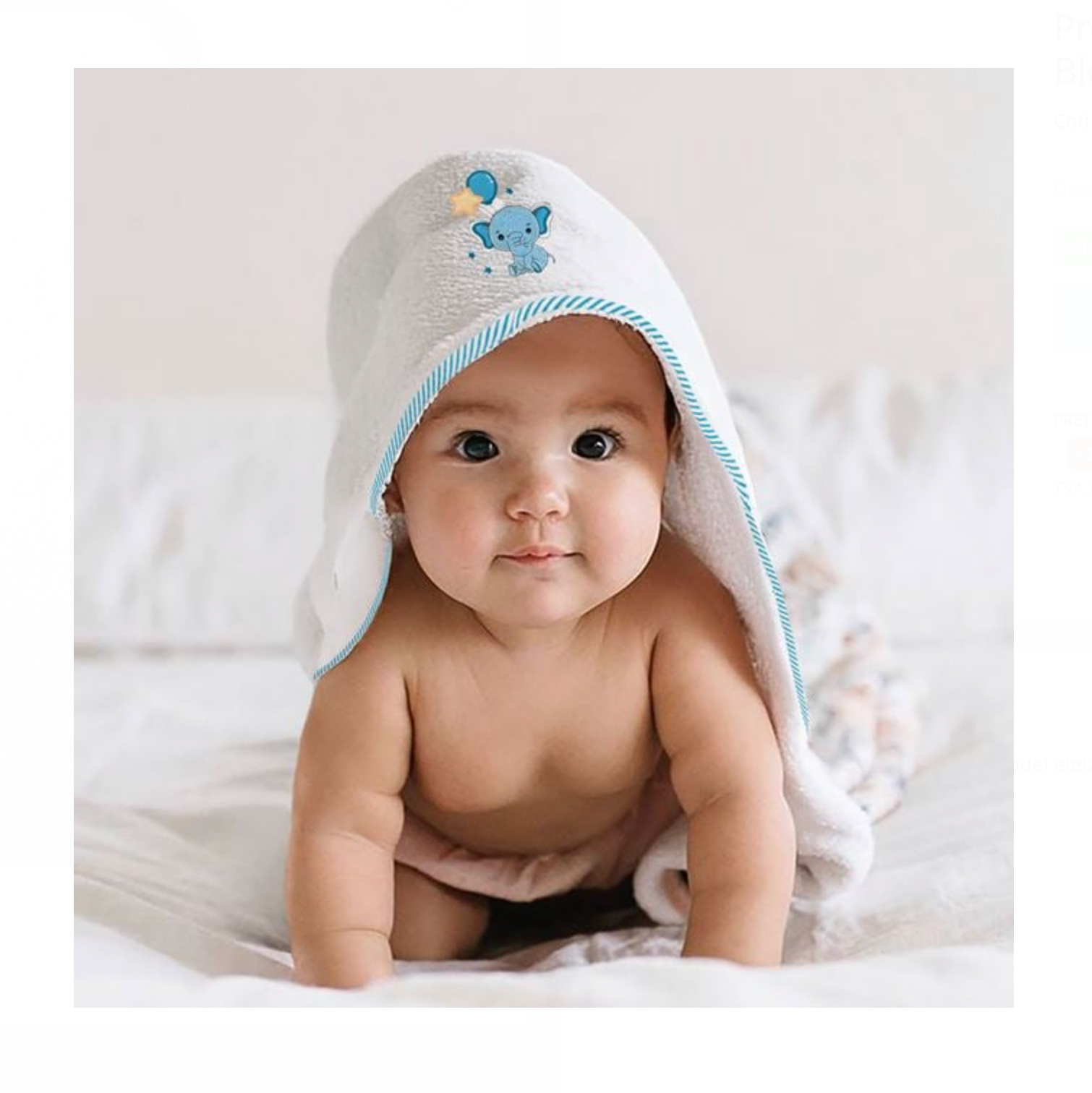 Prosop din Bumbac Alb cu Gluga cu Elefant Bleu 75x75cm