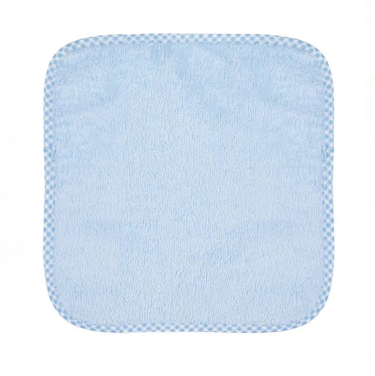 Prosopel moale din bumbac, ideal pentru îngrijirea bebelușilor. De culoare ciel, cu margine decorativă în carouri, delicat cu pielea sensibilă și confortabil pentru utilizare zilnică.