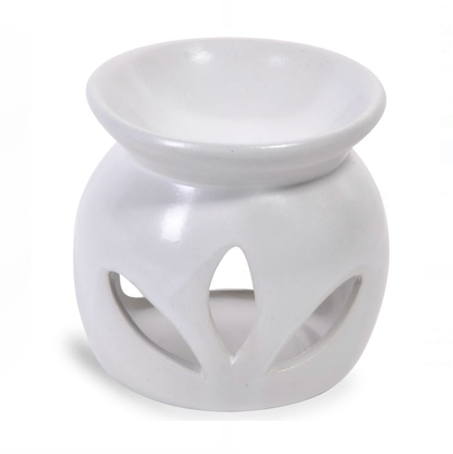 Suport pentru ulei parfumat, din ceramică albă, cu dimensiuni Ø7,5x8,5 cm. Elegant și practic, ideal pentru difuzarea parfumurilor preferate, aducând o notă decorativă și un ambient plăcut în orice încăpere.