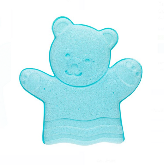 Baveta cu Colector de Alimente & Lingura din Silicon Bleu Labuta de Ursulet